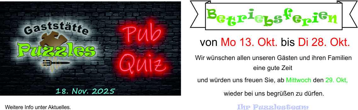 KNEIPEN-QUIZ am Dienstag, den 18. Nov. 2025Nur mit Anmeldung!Beginn 19:00 UhrTeilnahmegebühr: 5,-€ pro Person (wird am Abend bezahlt)Anmeldungen bitte nur in TeamsTeamgröße: max. 6 Pers. / bei mehr: pro Pers. […]
